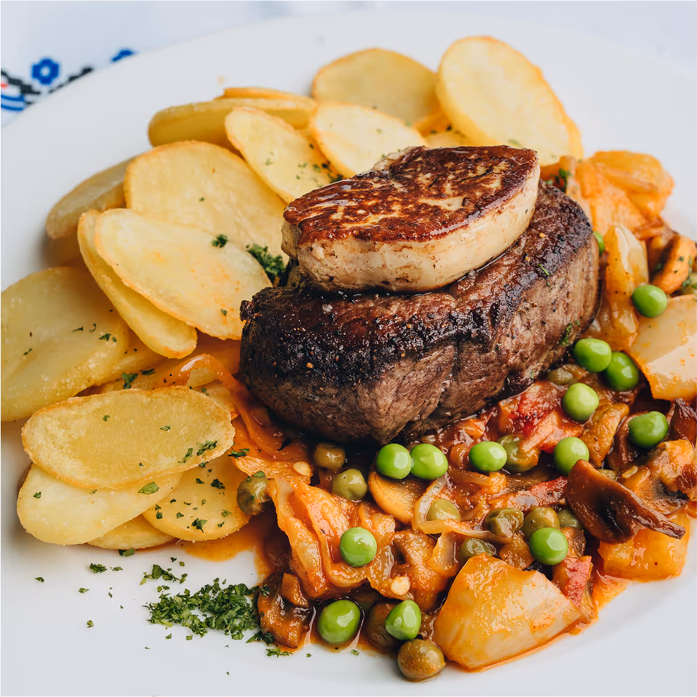 Savor the true flavors of Hungary with our carefully curated menu, featuring time-honored recipes prepared with the finest local ingredients, while keeping in mind all diatery restrictions. From savory goulash soup to exquisite Somló sponge cake, every dish tells a story of our culinary heritage. Paired with premium local wines, beers, and refreshing soft drinks, your dining experience becomes a true feast for the senses.